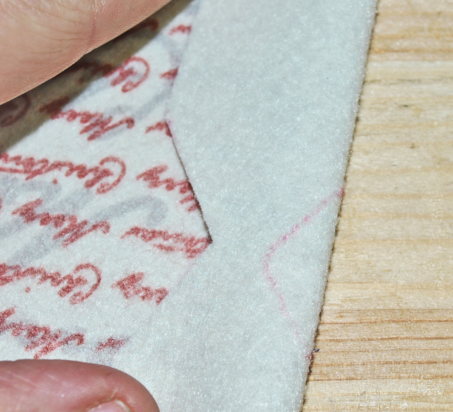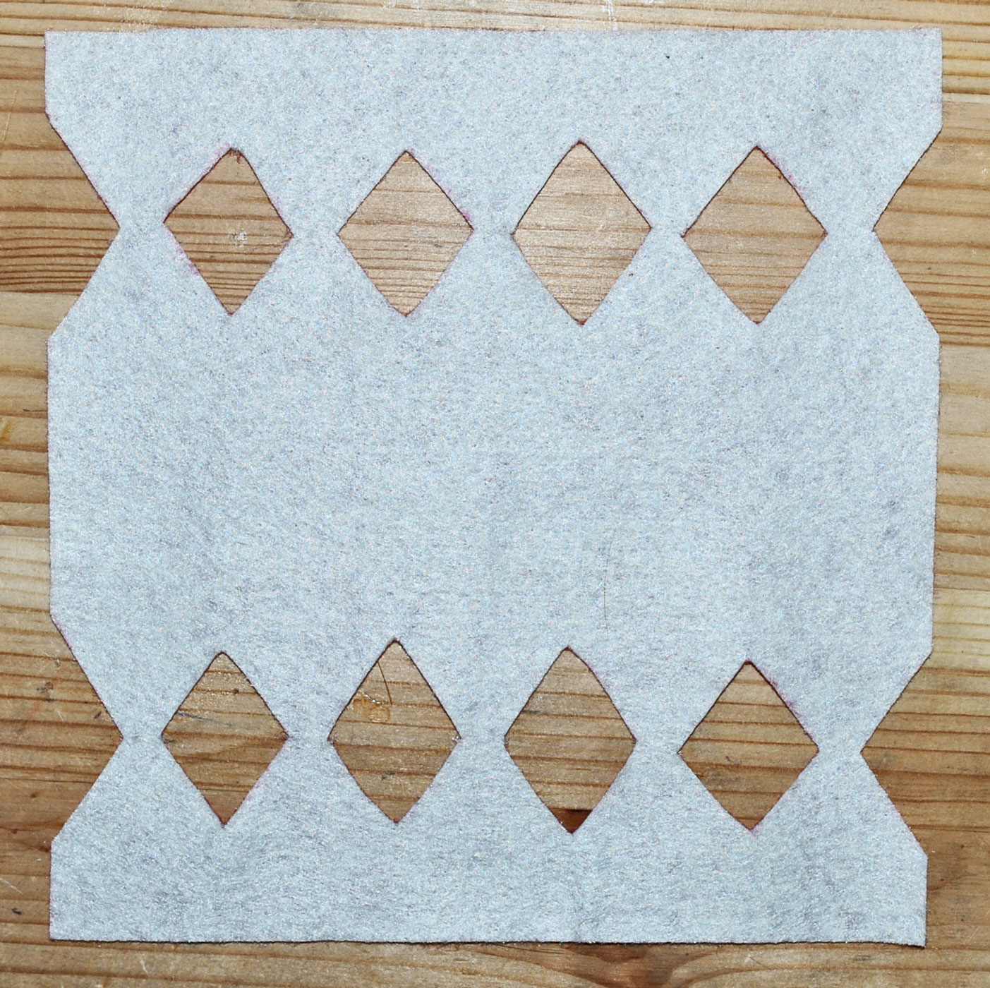 Cutting the diamonds out can be tricky so do it like this, Fold the felt over matching up the corners of the opposite diamonds.